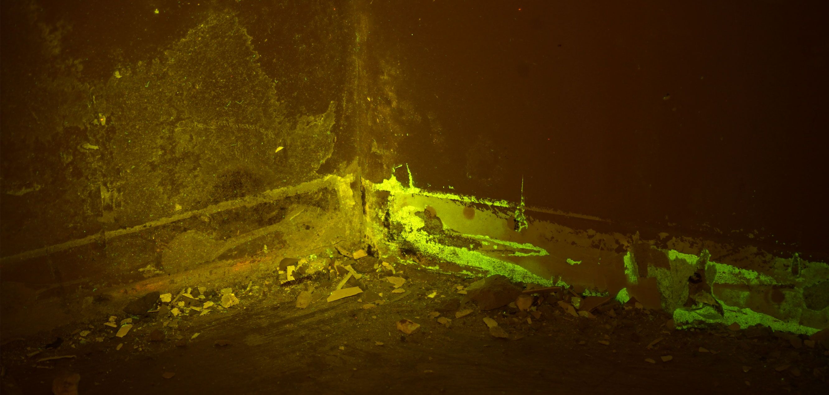 Wichtig zur Durchführung der Bauforensik ist, dass die zu untersuchenden Bereiche vollständig abgedunkelt sind. Je dunkler der Raum, desto besser funktioniert die Methode.
