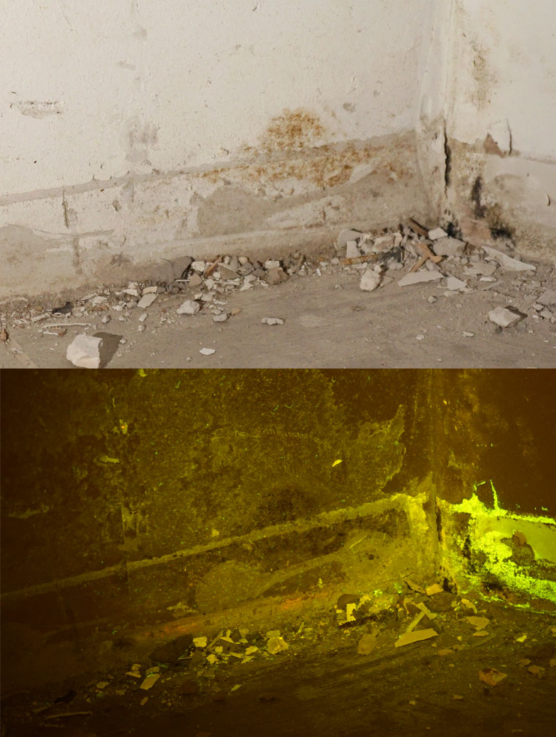 Wichtig zur Durchführung der Bauforensik ist, dass die zu untersuchenden Bereiche vollständig abgedunkelt sind. Je dunkler der Raum, desto besser funktioniert die Methode.